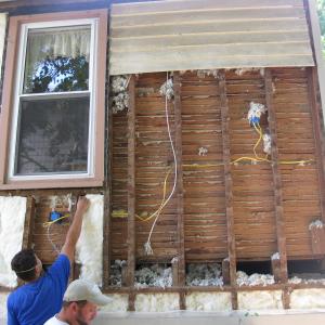We removed old siding, re-insulated, and installed cement fiber siding.
