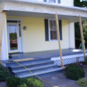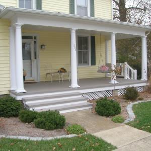We replaced damaged framing and added extra support, then installed Pro Cell decking, outer trim and lattice. Also we added vinyl railing on the right side.