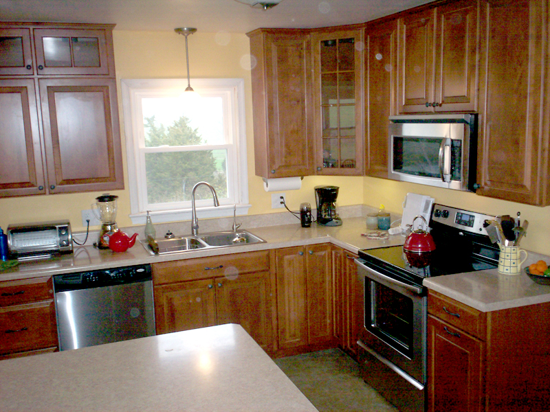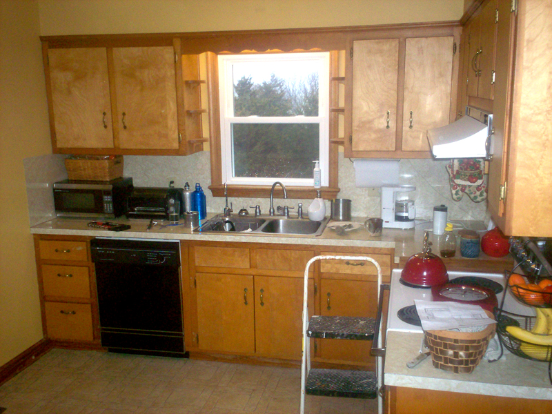 We removed the dead space above the old cabinets, installed new cabinets and appliances
